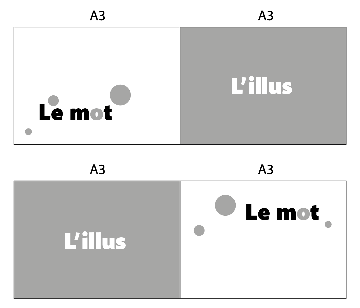 Vous travaillerez sur le format A3 fermé. Par fermé, j’entends que vous ne devez pas vous étendre sur la page d’à côté.