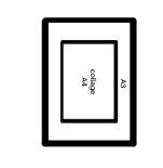 - Recherches en collage (manuel) d’images récupérés, découpés, alimentées par le dessin, composés au format A4 portrait : trois propositions doivent être faites. L’installation des collages se fera sur feuille à dessin A3, centré dans la page (voir schéma).
